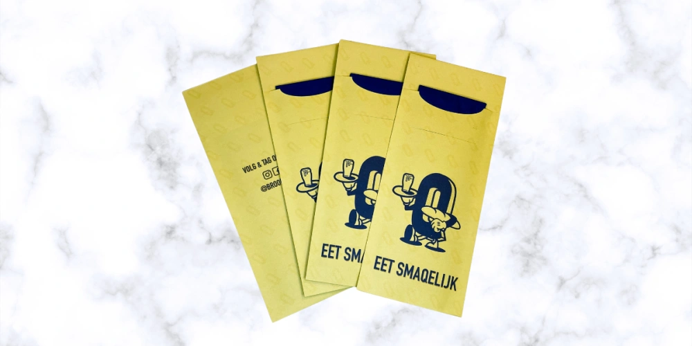 | Voor Broodje Q in Rotterdam hebben wij weer deze bestekzakjes mogen verzorgen. Ook op zoek naar horeca drukwerk? Dan ben je bij ons aan het goede adres. |