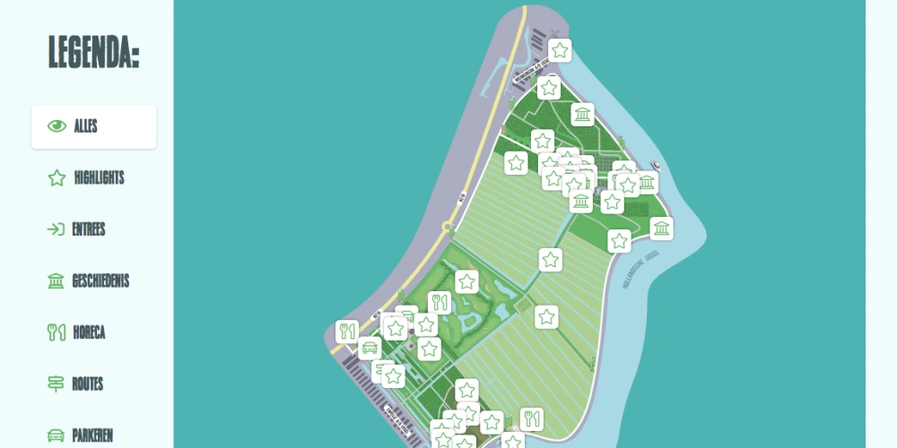 Voor de nieuwe website van Park Hitland in Nieuwerkerk aan den IJssel moest er een plattegrond ontworpen worden, die naast dat hij overzichtelijk moet zijn ook nog eens interactief wordt!