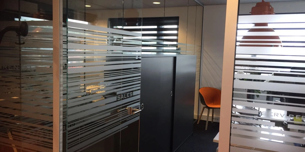 Daarvoor hebben wij de perfecte oplossing toegepast bij Peinemann. Een mooi patroon van 'frosted folie' zorgt voor een speels effect op de ramen. Daarin staan met tekst de diverse afdelingen verwerkt.